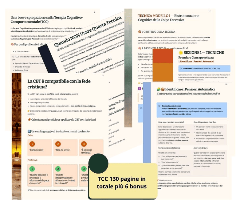 Accedendo oggi a 50 TECNICHE DI TCC ALLA LUCE DELLA BIBBIA, riceverai: